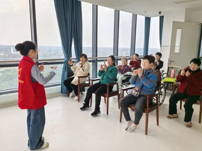 周末時分,我們邀請了一批小志愿者來到科室,帶領(lǐng)爺爺奶奶一起做手指操。老人們認(rèn)真投入、笑容滿面,不僅有效緩解了孤獨感,也活動了上肢、靈活了大腦。