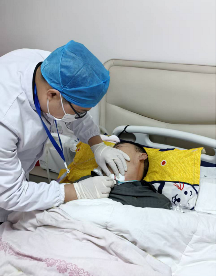 重癥醫(yī)學科護士馮永飛則為張女士順利完成鼻胃管更換。鑒于患者高齡且伴有基礎(chǔ)疾病,護理團隊提前進行全面評估,并在服務中詳細向家屬講解鼻飼護理要點、飲食配置方法及相關(guān)風險觀察技巧。服務回訪中,張女士家屬表示:“護理人員既貼心又專業(yè),沒想到在家也能享受到和醫(yī)院同品質(zhì)的護理,心里特別踏實”。